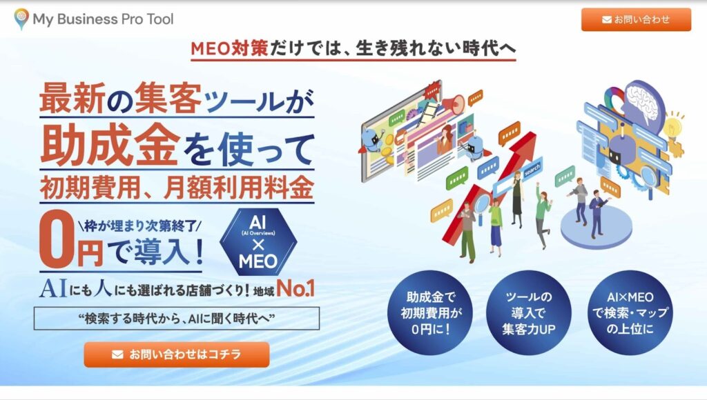 | My Business Pro Tool | AI×MEOによる集客支援。助成金申請の丸投げサポートが魅力 |