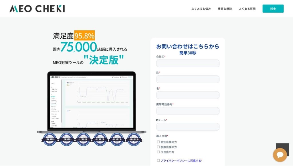 MEOチェキは、国内で75,000店舗以上の導入実績を誇るMEO対策ツールです。